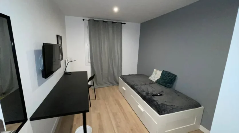 Située dans un appartement moderne, cette chambre grise de 10 m² est idéale pour un(e) étudiant(e) ou jeune actif(ve).