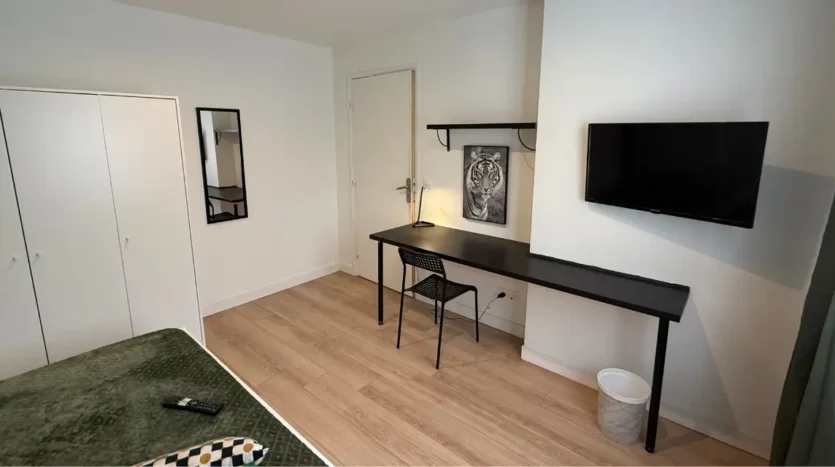 Située dans un appartement moderne, cette chambre verte de 10 m² est idéale pour un(e) étudiant(e) ou jeune actif(ve).